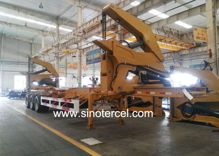 Способ загрузки: боковая загрузка:В отличие от традиционных контейнерных прицепов, которые используют краны или вилочные погрузчики.Прицеп для подъема контейнеров использует гидравлические руки для подъема и перемещения контейнеров в сторонуЭтот метод загрузки не только быстрее и эффективнее, но и требует меньшего пространства, что делает его подходящим для узких или ограниченных помещений.