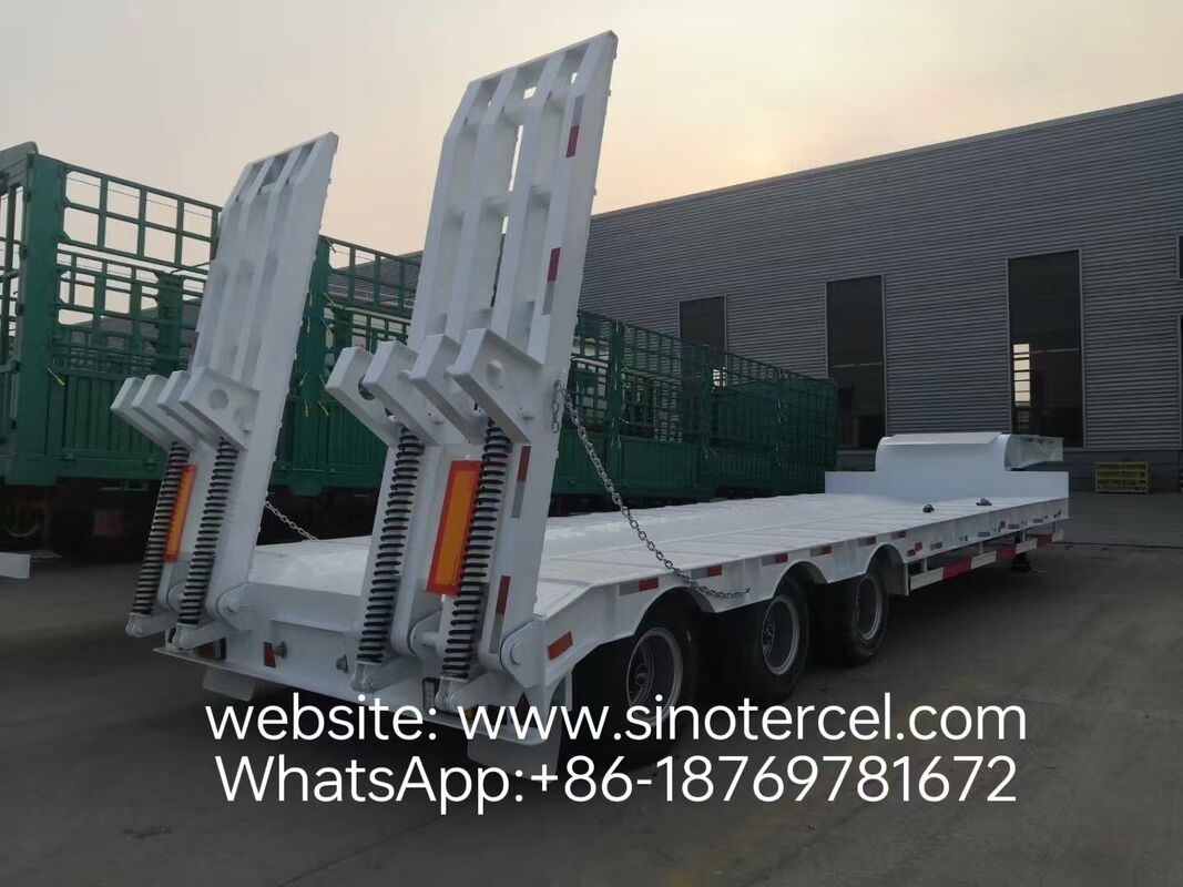 Improved Loading & Unloading Efficiency: Standard-equipped with ordinary mechanical ramps, integrally formed with thickened steel, featuring strong load-bearing capacity and simple operation. It supports construction machinery to drive up and down independently without additional hoisting equipment, greatly saving loading and unloading time and labor costs. The vehicle body is reserved with multiple standardized insertion holes for easy installation of fixing tools such as steel wire ropes and straps. The side beams are reinforced to nearly 30cm, further improving cargo fixing stability and adapting to the transportation needs of heavy goods of different sizes and shapes.
